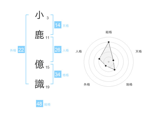 小鹿 億識さんを姓名の画数から五運を鑑定