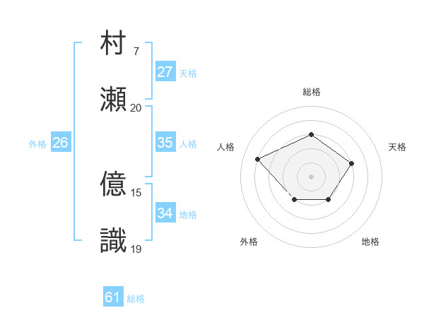 村瀬 億識さんを姓名の画数から五運を鑑定