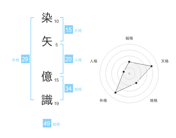 染矢 億識さんの総格は49画の2点!