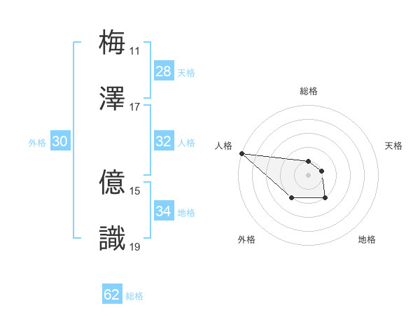 梅澤 億識さんの地格は34画の2点!