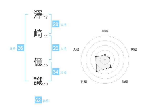 澤崎 億識さんの総格は62画の1点!