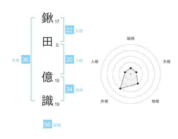 鍬田 億識さんを姓名の画数から五運を鑑定