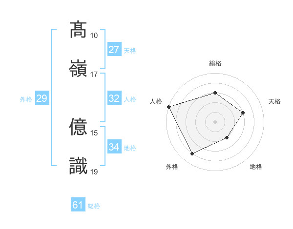髙嶺 億識さんを姓名の画数から五運を鑑定