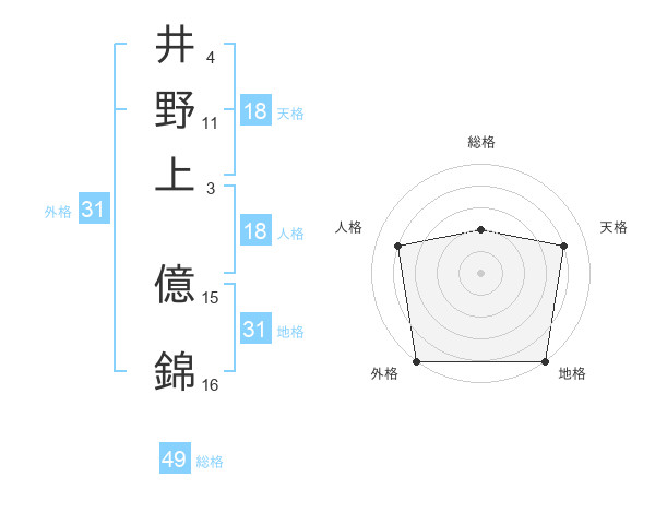 井野上 億錦さんを姓名の画数から五運を鑑定