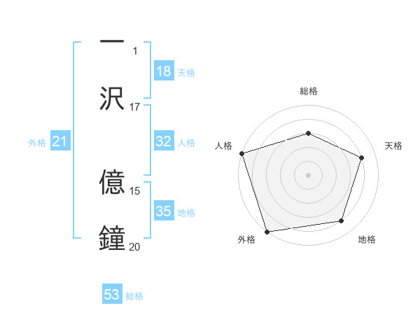 一沢 億鐘さんを姓名の画数から五運を鑑定
