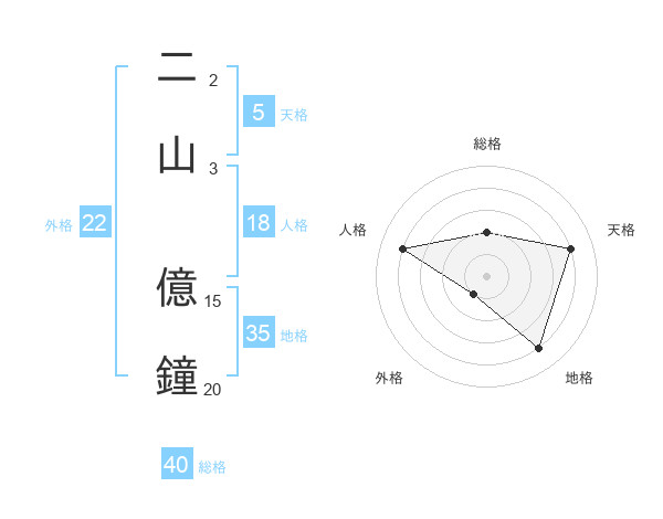 二山 億鐘さんの外格は22画の1点!