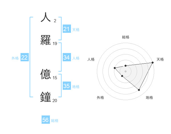 人羅 億鐘さんを姓名の画数から五運を鑑定