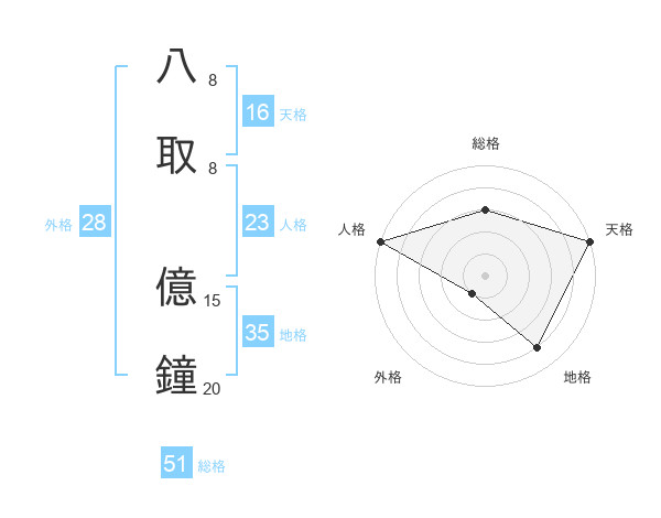八取 億鐘さんを姓名の画数から五運を鑑定