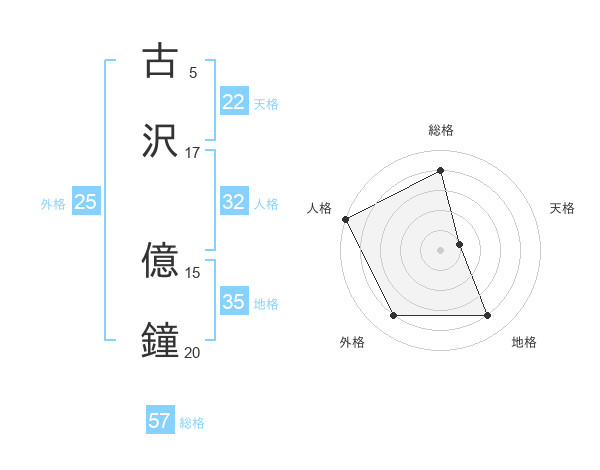 古沢 億鐘さんの総格は57画の4点!