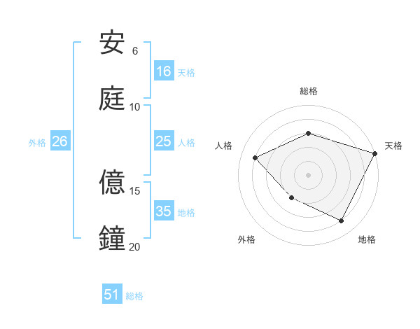 安庭 億鐘さんを姓名の画数から五運を鑑定