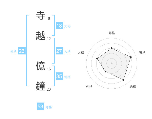 寺越 億鐘さんを姓名の画数から五運を鑑定