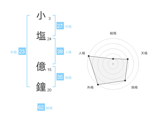 小塩 億鐘さんの外格は23画の5点!