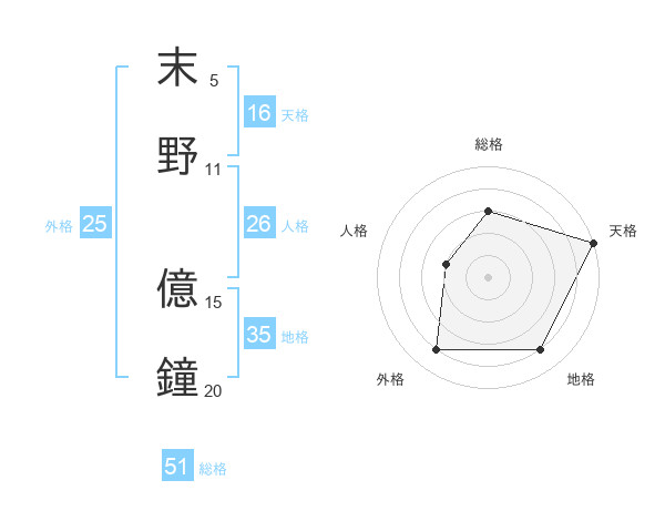 末野 億鐘さんを姓名の画数から五運を鑑定