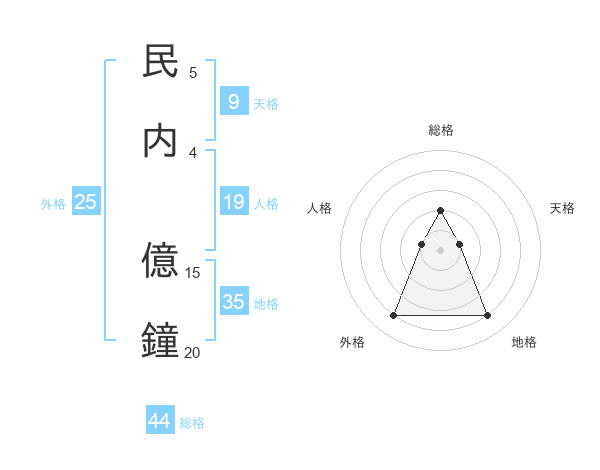 民内 億鐘さんを姓名の画数から五運を鑑定