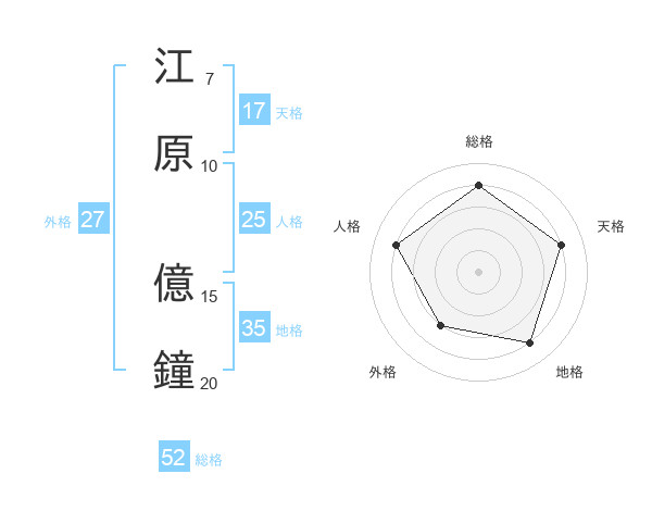 江原 億鐘さんを姓名の画数から五運を鑑定