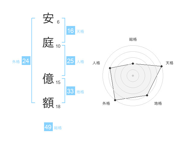 安庭 億額さんの総格は49画の2点!