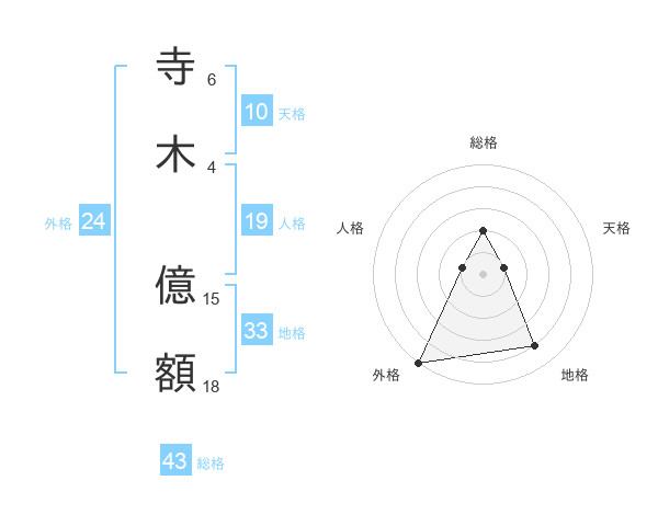 寺木 億額さんの総格は43画の2点!