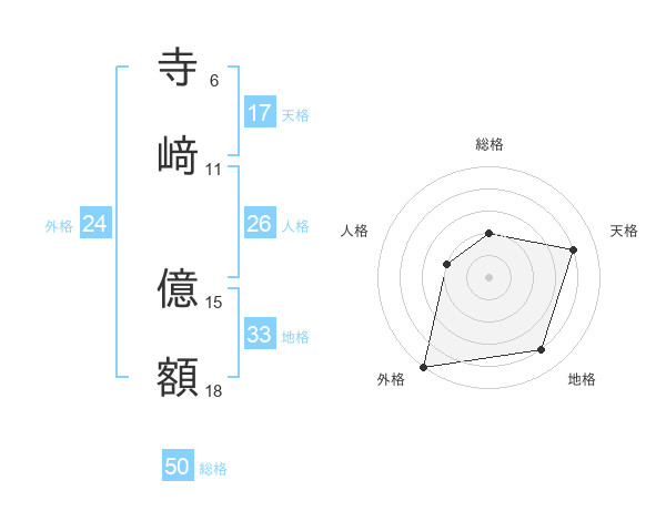 寺﨑 億額さんの総格は50画の2点!