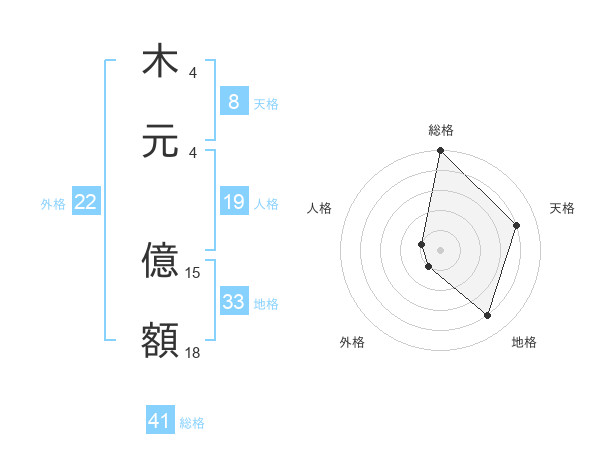 木元 億額さんの天格は8画の4点!