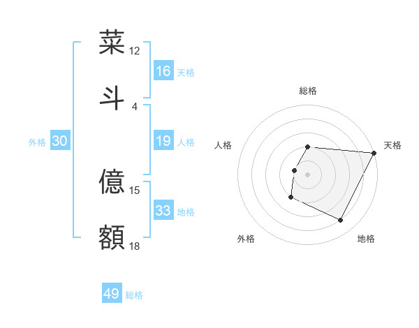 菜斗 億額さんを姓名の画数から五運を鑑定