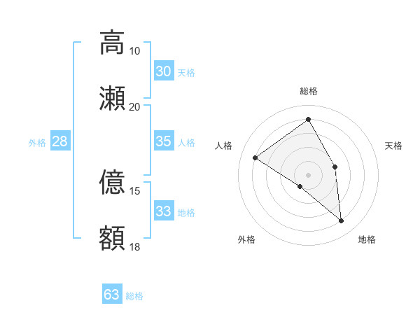 高瀬 億額さんを姓名の画数から五運を鑑定