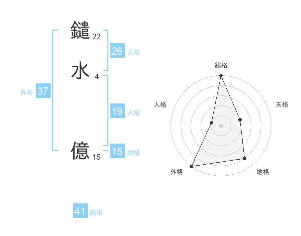 鑓水 億さんの総格は41画の5点!
