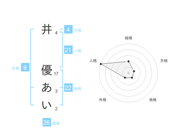 井 優あいさんの総格は26画の2点!