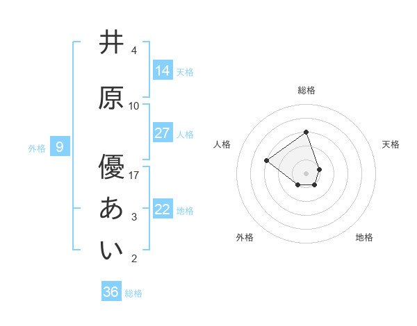 占い結果は姓名判断である以上、良い場合も悪い場合もありますが、決してお名前を誹謗中傷するものでなく、画数の自動計算によって得られたものです。また、本サイトの検索によって得られた鑑定結果で、第三者を誹謗中傷したり名誉を棄損するような行為を禁じます。