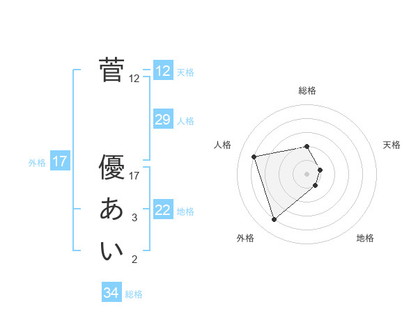 菅 優あいさんの外格は17画の4点!