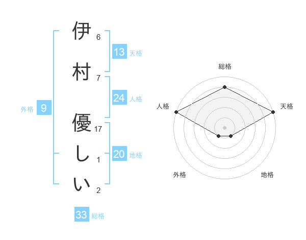 伊村 優しいさんを姓名の画数から五運を鑑定