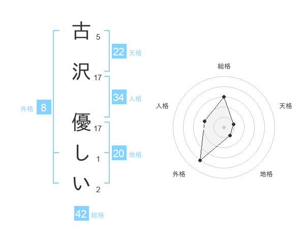古沢 優しいさんを姓名の画数から五運を鑑定