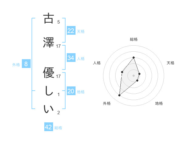 古澤 優しいさんを姓名の画数から五運を鑑定