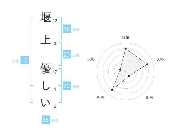 堰上 優しいさんの外格は15画の4点!