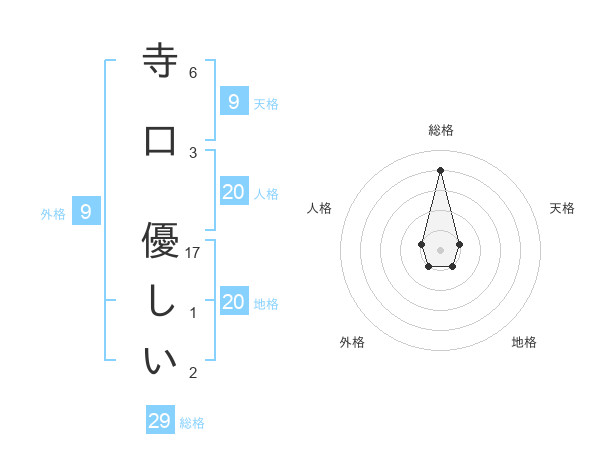 寺口 優しいさんの総格は29画の4点
