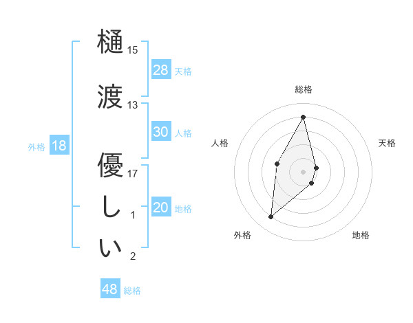 樋渡 優しいさんの総格は48画の4点!