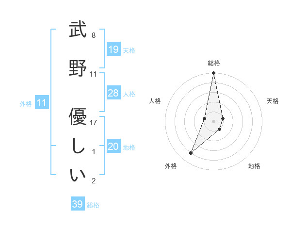 武野 優しいさんの総格は39画の5点!
