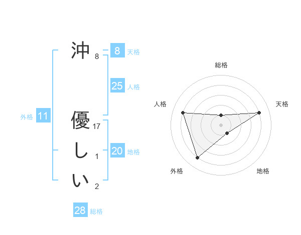 沖 優しいさんの地格は20画の1点!