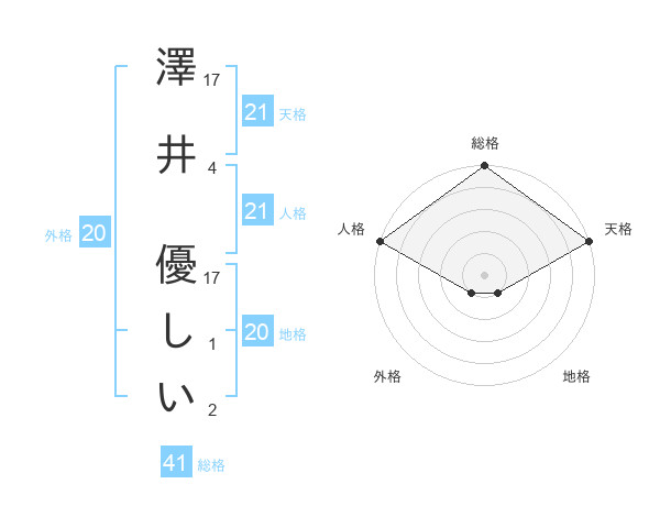 澤井 優しいさんを姓名の画数から五運を鑑定