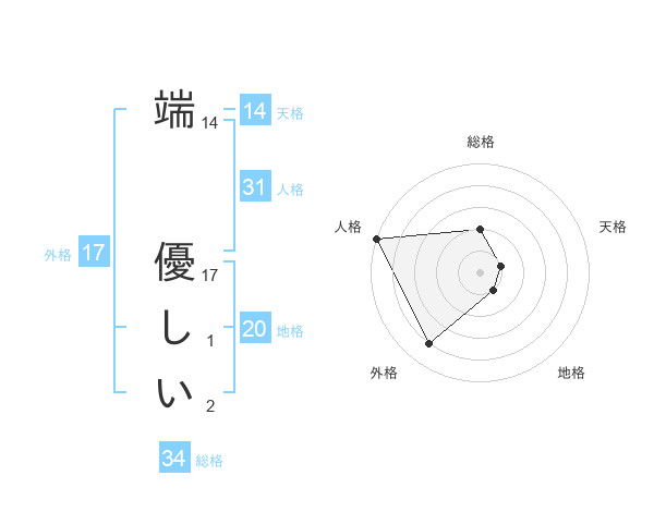 端 優しいさんの総格は34画の2点!