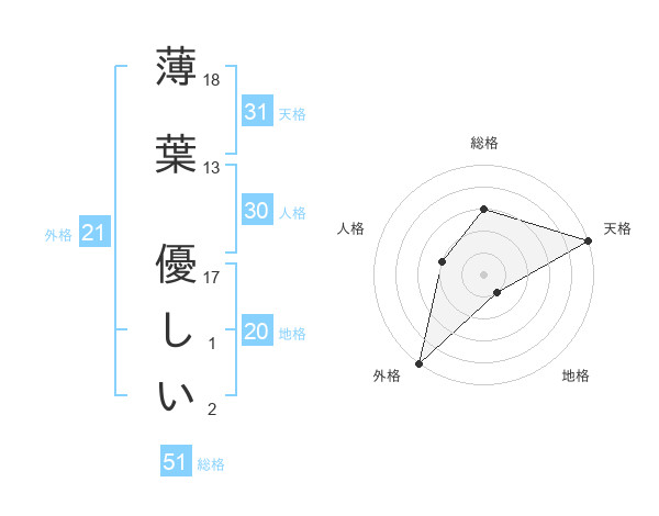 薄葉 優しいさんを姓名の画数から五運を鑑定
