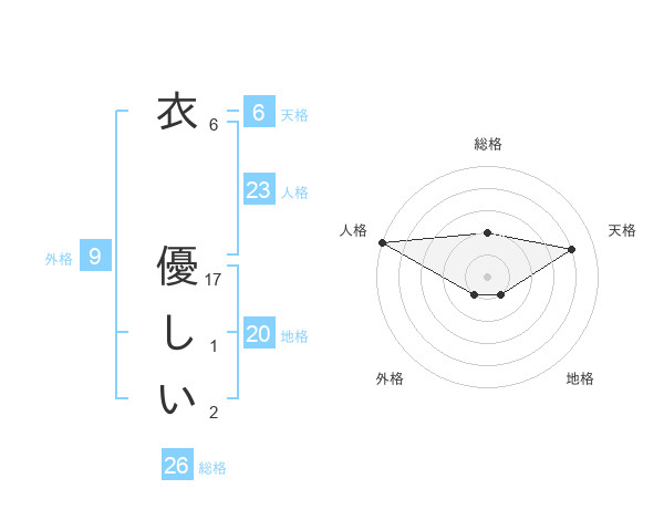 衣 優しいさんの総格は26画の2点!