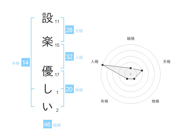 設楽 優しいさんを姓名の画数から五運を鑑定