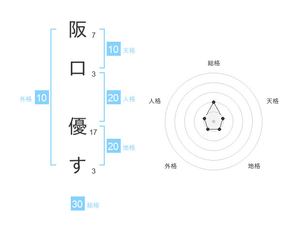 阪口 優すさんの総格は30画の2点!