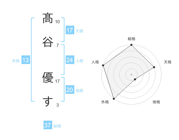 髙谷 優すさんを姓名の画数から五運を鑑定
