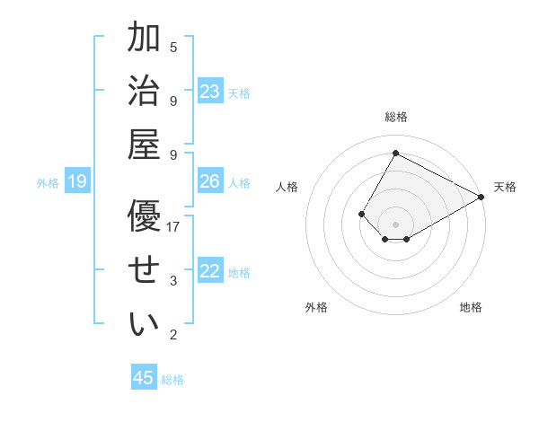 加治屋 優せいさんを姓名の画数から五運を鑑定