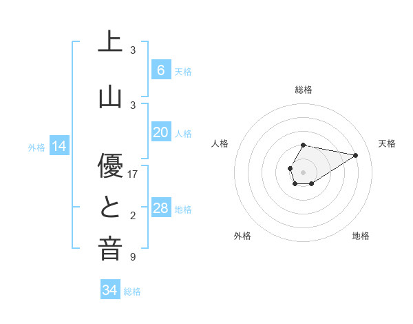 上山 優と音さんの天格は6画の4点!