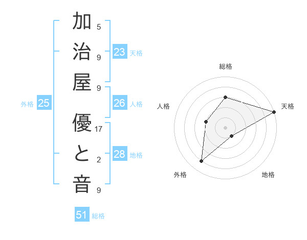 加治屋 優と音さんを姓名の画数から五運を鑑定