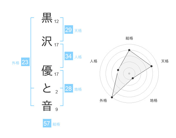 黒沢 優と音さんの総格は57画の4点