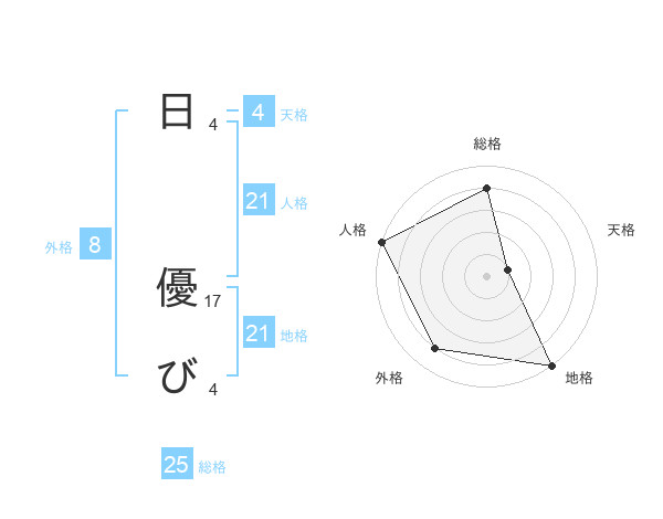 日 優びさんの総格は25画の4点!