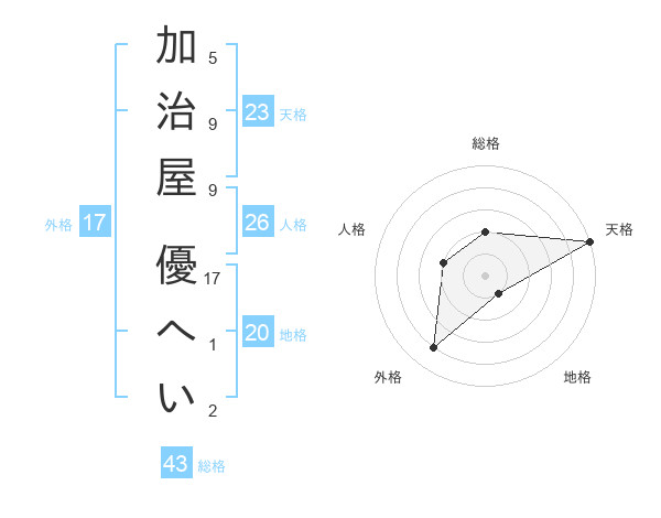 加治屋 優へいさんを姓名の画数から五運を鑑定